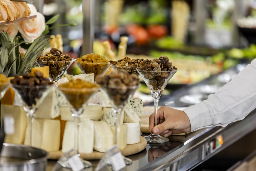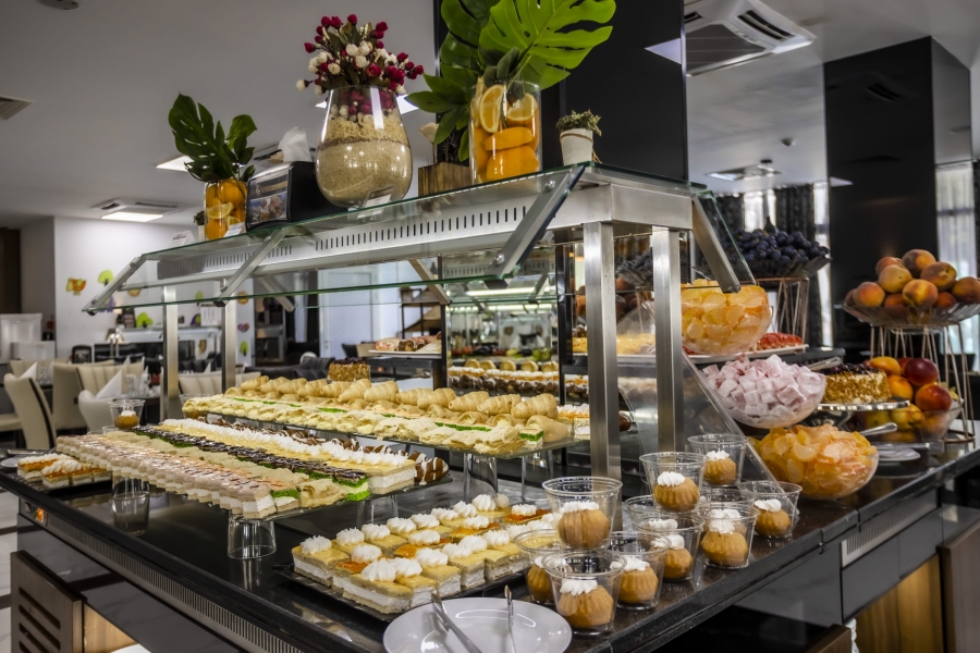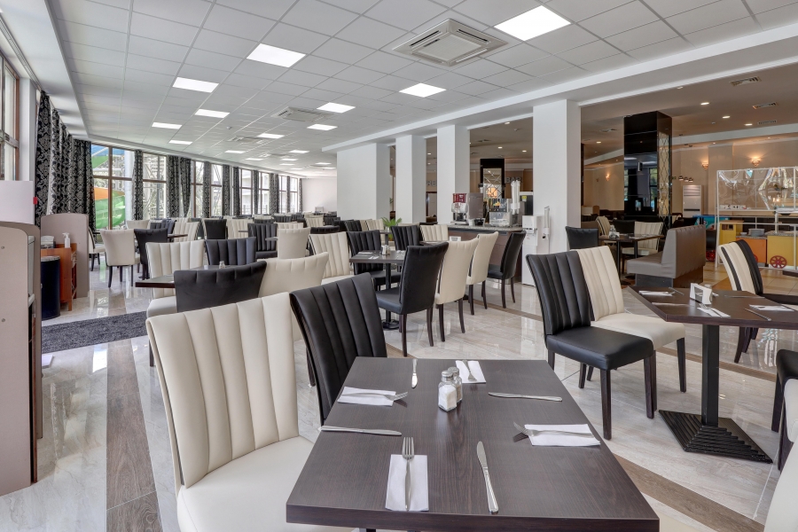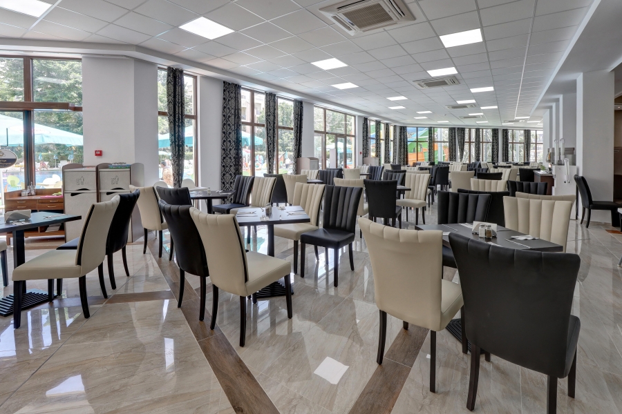 Das Hauptrestaurant des Hotels basiert auf einem All-Inclusive-Konzept und bietet verschiedene reichhaltige Buffets zum Frühstück, Mittag- und Abendessen. Das Restaurant verfügt über einen erneuerten, modernen und geräumigen Innenraum mit einer Kapazität von 400 Gästen. Sie können auch die Außenterrasse des Restaurants für 130 Personen genießen.